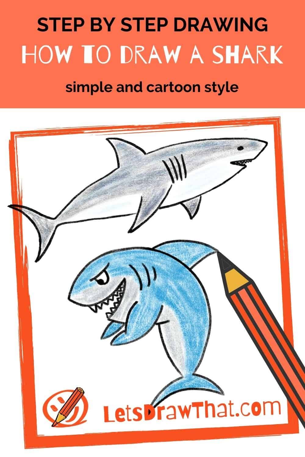 Learn how to draw a shark. We draw two very different sharks – one simple with very realistic proportions, the other greatly exaggerated cartoon style.